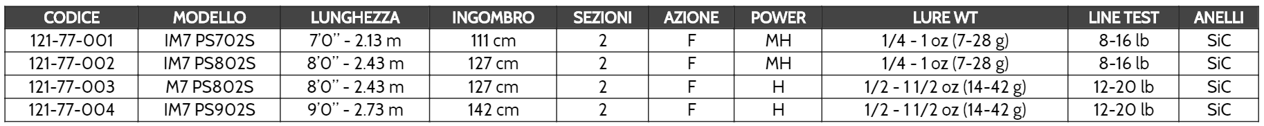 | SIZE | 2.13 m 7-28 g, 2.43 m 14-42 g, 2.43 m 7-28 g, 2.73 m 14-42 g |